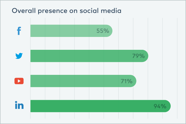 All of the companies in the study had a website, however, overall presence on social media was varied: